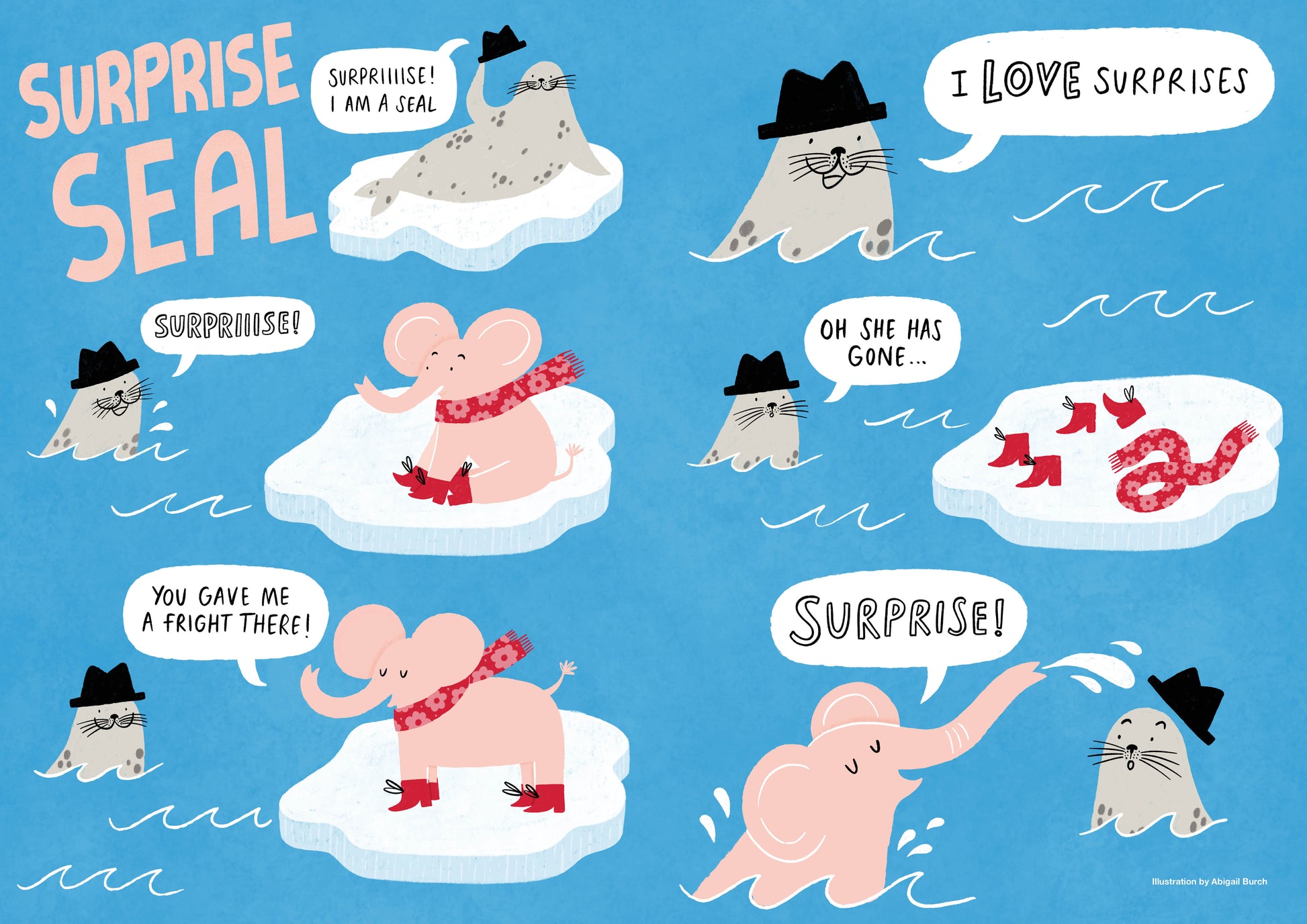 We learn to make paper flowers, and green cheesy toasts and meet a new friend called Surprise Seal.
