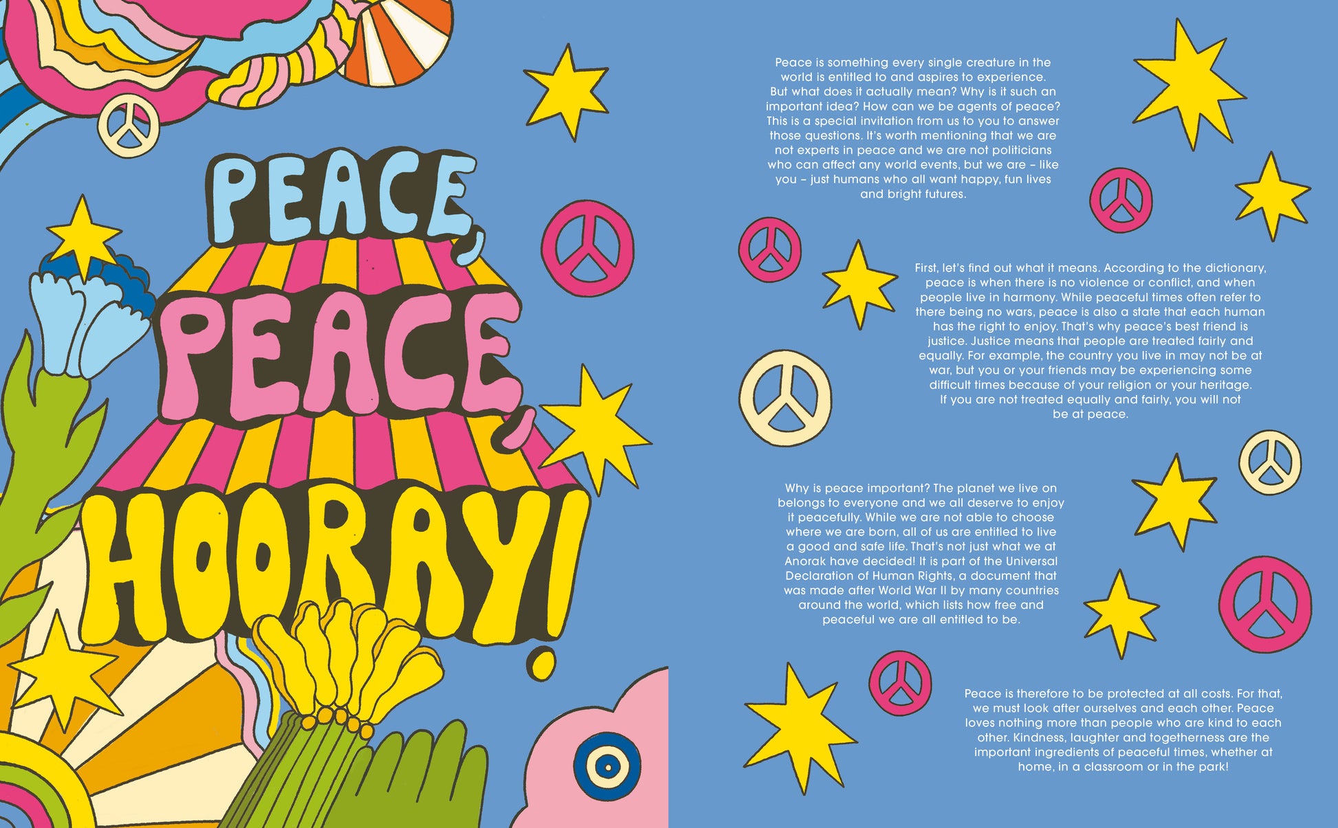 We meet a very busy chap who strikes an unlikely friendship with a mysterious bunch of Peace Fishes, Zizi the dog who wonders where she can find peace and our Little Editors gallery is bursting with beautiful peace-inspired art.