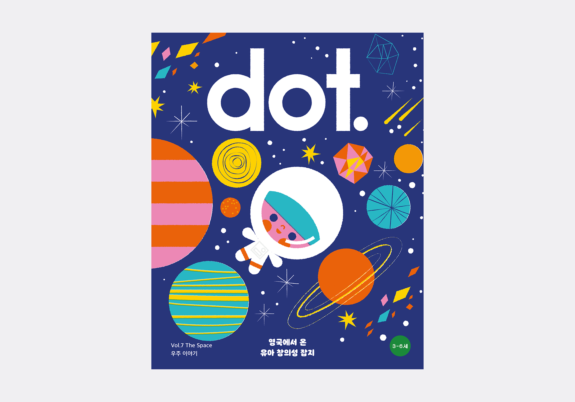 이번 닷의 테마는 ‘우주 이야기'입니다. 일론 머스크가 우주선 스타십을 발사하고 우주여행을 꿈꾸는 오늘날, 이제 우주 시대는 더욱 가까워졌어요. 흥미로운 과학 이야기가 가득하고 마음껏 상상을 펼칠 수 있는 무한한 공간, 우주! 태양계의 8개 행성부터 계절의 원리, 지구의 구조, 우주선과 우주복, 별자리, 푸른 행성 지구까지, 어려울 수 있는 우주 이야기를 쉽고 재미있게 풀어냈어요. 친구와 함께 할 수 있는 주사위 게임, 우주 모험을 떠날 수 있는 로켓 신발 만들기, 별자리 연결하기 등 시간 가는 줄 모르게 재미난 코너들로 구성되어 있어요. 모두들 닷 우주선을 타고 우주 탐험을 떠날 준비가 되었나요? 밤하늘에 반짝이는 별 뒤에 숨겨진 신비로운 우주의 비밀을 찾으러 떠나 보아요!