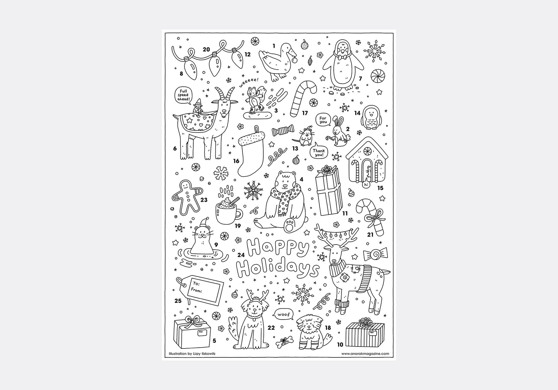 This Happy Advent Calendar, illustrated by Lizzy Itzkowitz, is all about colouring one day until the 25th arrives.