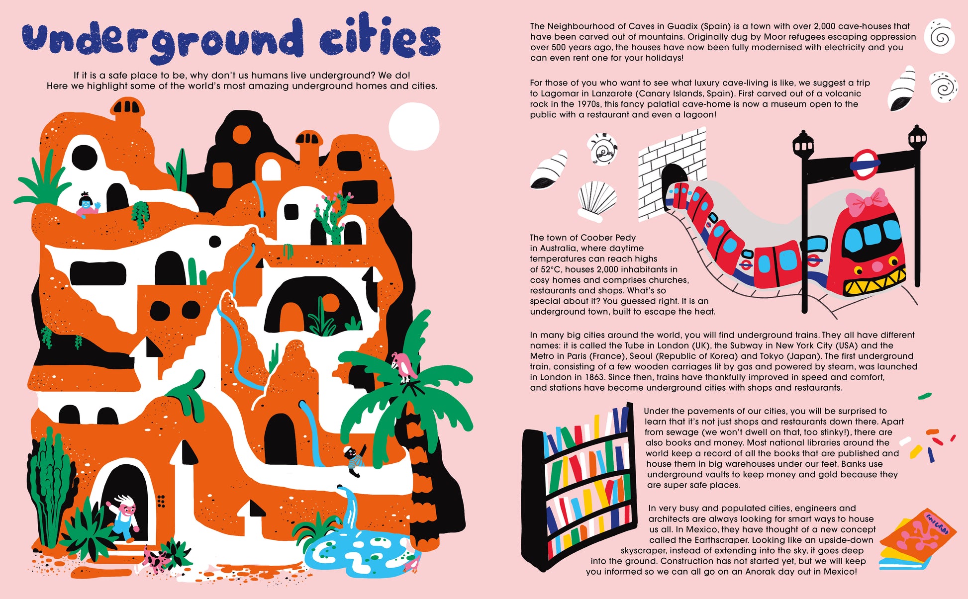 Plants, roots, microbes, great big lakes of lava, money, living (and dead!) creatures, myths, trains, our past: these are some of the things that we explore and share with our readers. We interview people whose jobs are all connected to the underground, such as an archaelogist, a geologist and two London Tube drivers.
