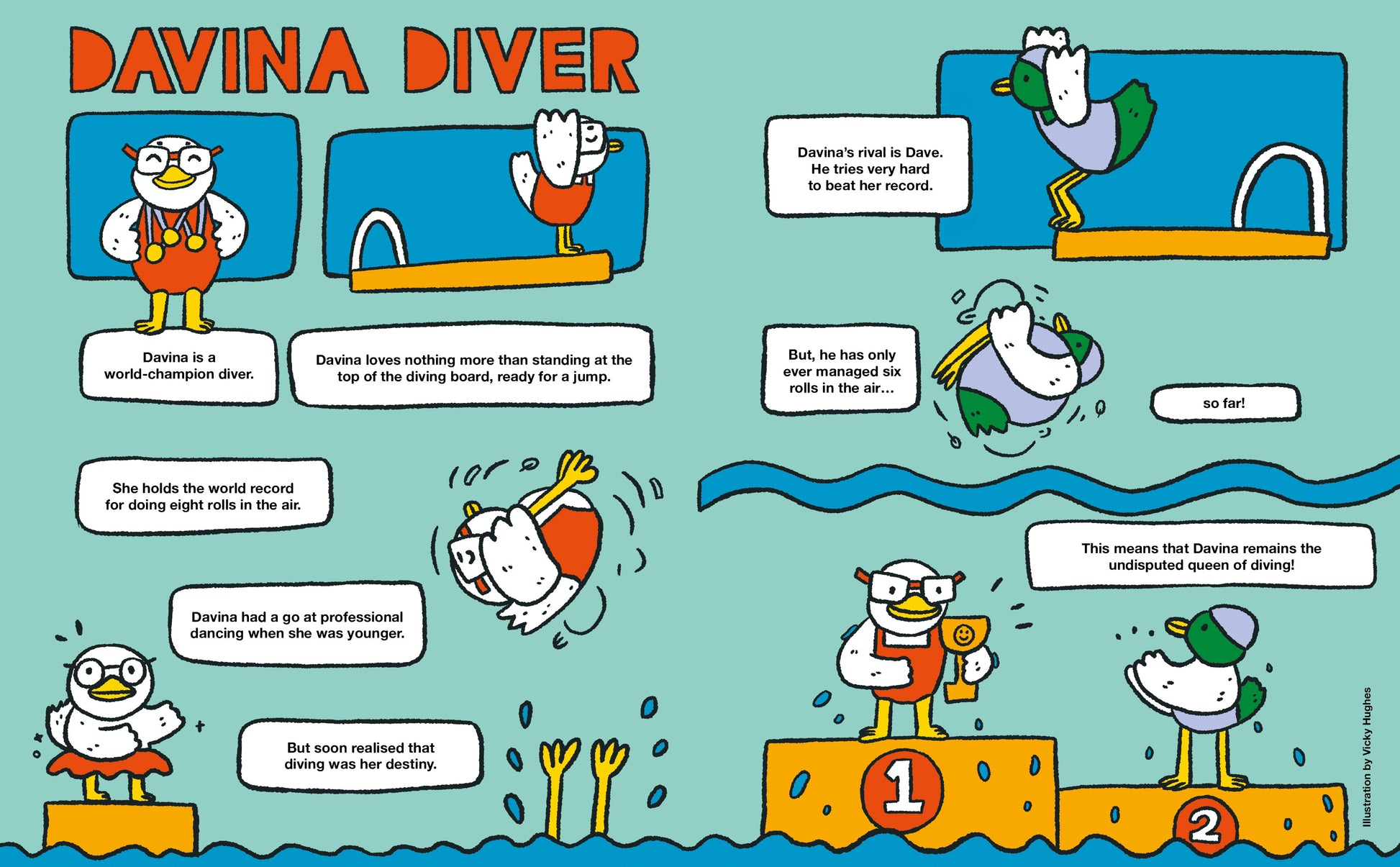 We meet the Queen of Diving, Davina and learn to cook orange spaghetti. We also lean how to make a basket ball hoop!