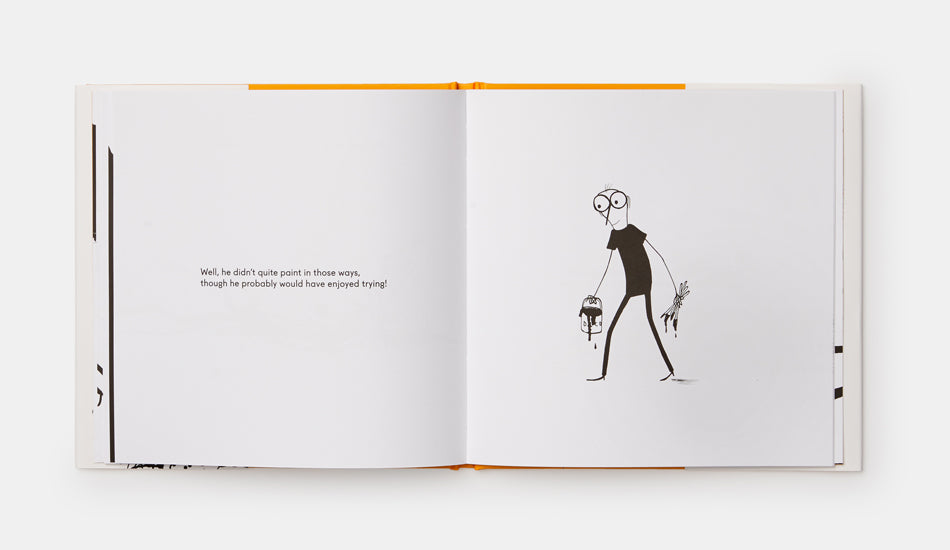 Jackson Pollock was unlike any other painter. Instead of sitting in front of an easel with brushes, he poured paint over canvases rolled-out across the floor, moving, splashing, and making the vivid liquid run with energy and rhythm. Pollock’s story is told here with wit and eccentricity, perfectly paired with black-line illustrations – and splatters galore.